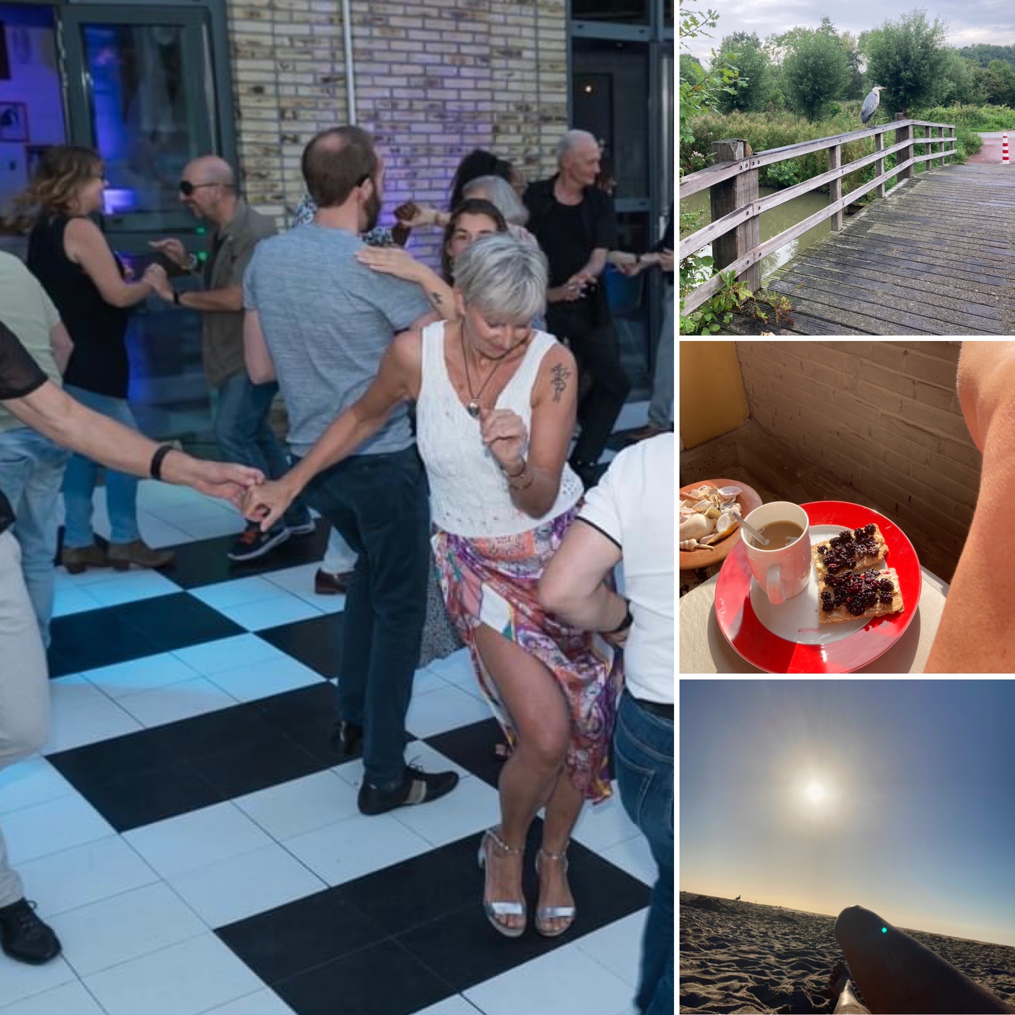 Zondag ; tot 10 uur !! geslapen. Wat keutelen in huis en de inhoud van een alweer klaar staande doorgeeftas bekeken. 1 jurkje eruit gevist en 3 erin gedaan. De was weggewerkt, ik moet er aan geloven want heb wat dingen te strijken bleh ! Appje van oudste dat hij en liefste ergens aan het ontbijt zitten voor de camper en van jongste die met liefste gaat motorrijden. Hij achterop want geen rijbewijs, zij wel. Oudste zegt de studieboeken even opzij te leggen in de vakantie en jongste knapt goed op na met een fikse longontsteking terug van vakantie gekomen en opgenomen geweest. Voor mij wordt het fietsen vandaag en na weken weer eens naar het strand en zee. En wat een cadeau is dat vandaag. De zee is heerlijk, het strand waar ik ga heerlijk rustig en de zon is tot laat nog voelbaar. Bij de uitspanning waar ik me aan het eind van de dag wil trakteren is alles op. Mijn avond eten wordt een cheesecake en irish coffee. Ook lekker en ik ben allang blij weer wat te proeven en te ruiken. De chocola van woensdag was ook jammie hahaha.
