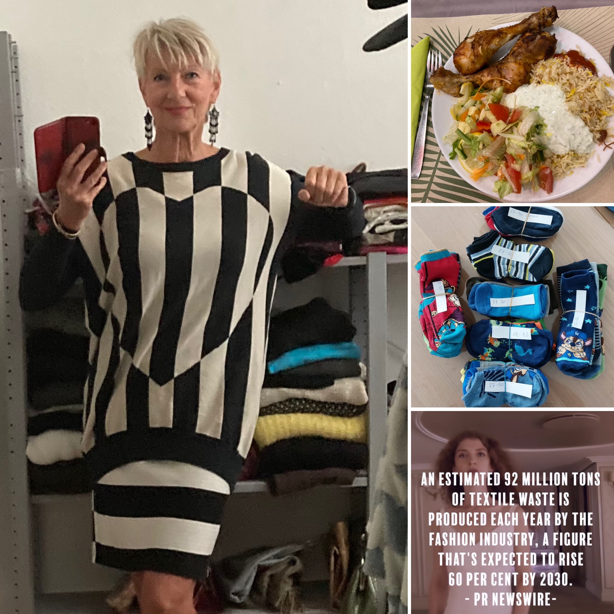 Donderdag ; Een ander helpend handje vandaag op Kleertjes. We schieten aardig op maar allemachtig wat is het veel. Ook de bak “komt niet door de keuring” is overvol, er staan alweer 7 tassen nog uit te sorteren en in het berghok 2 volle winkelwagens. Hoe fijn ook dit te doen, het schuurt 😔. Een onderzoek heeft uitgewezen dat wanneer we 1 jaar geen kleding kopen, er voor 60 jaar genoeg is. Ook even met de dames van de speelOtheek gezeten met nadruk op even. Thuis vandaag maar eens fatsoenlijk eten gemaakt. Stamppot andijvie met oei schuldig, een saucijzenworst. Wel van de slager. Donderdagavond dansavond. Din M gaat ook eens mee en din R haalt ons op. Met de vloer nog buiten en de maan bijna vol een topavond. Niet in Rotterdam. Gekte is nooit ver weg.